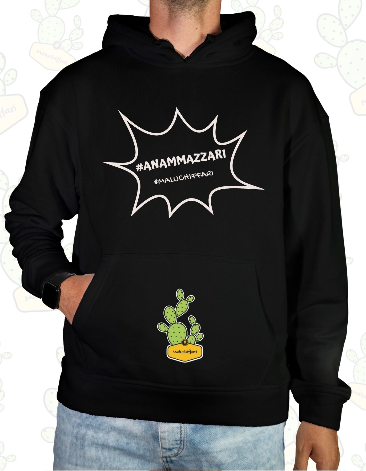 Felpa comoda, tosta, irriverente: la felpa con cappuccio firmata Maluchiffari è fatta per cu si voli sentiri stilusu pure quannu fa friddu.