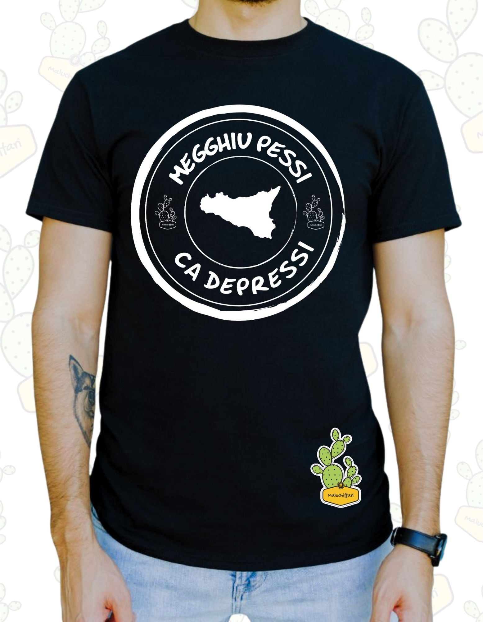 T-shirt Uomo – MEGGHIU PESSI CA DEPRESSI TIMBRO Sicilia 1.0