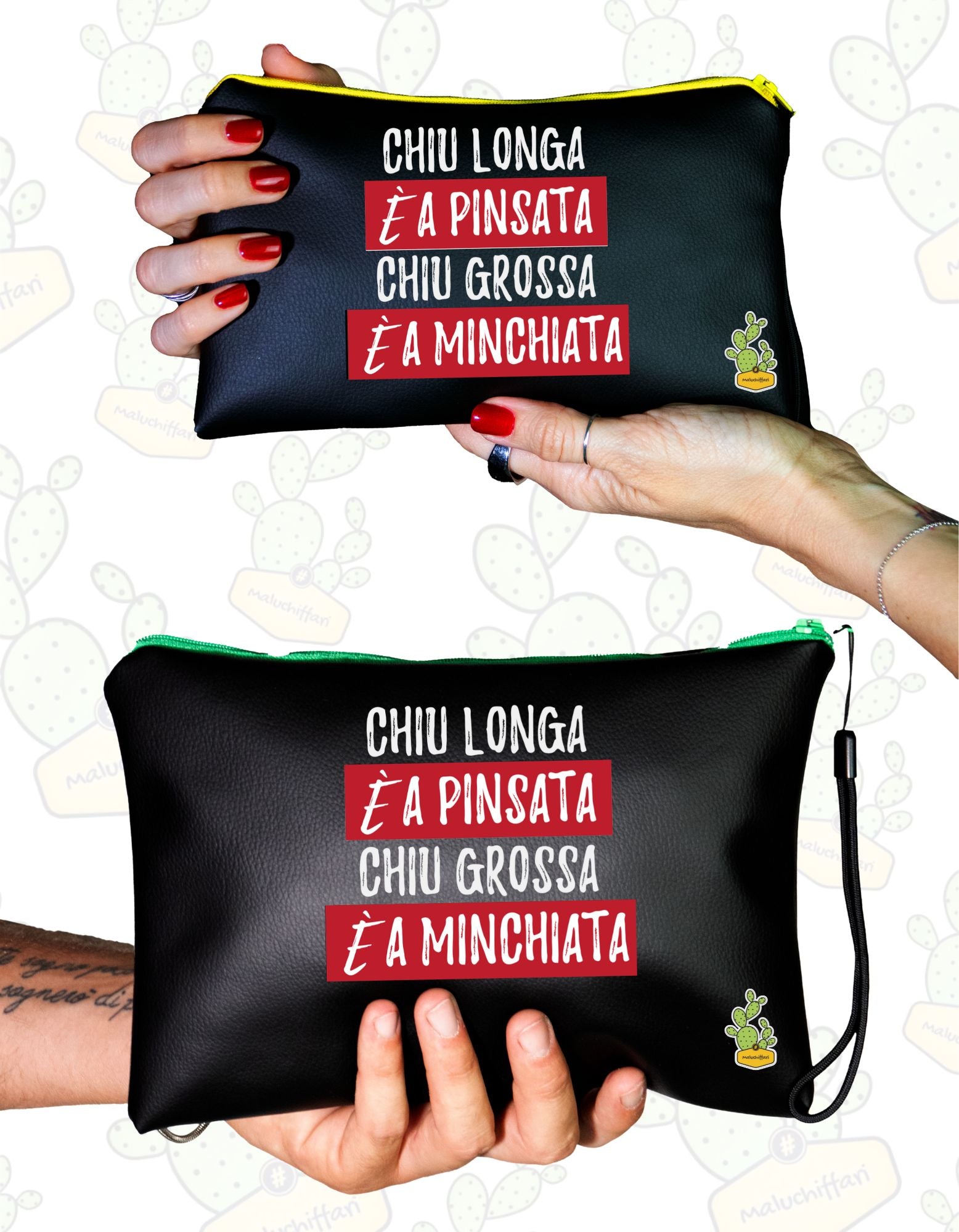Pochette in ECOPELLE– CHIU LONGA è A PINSATA CHIU GROSSA è A MINCHIATA