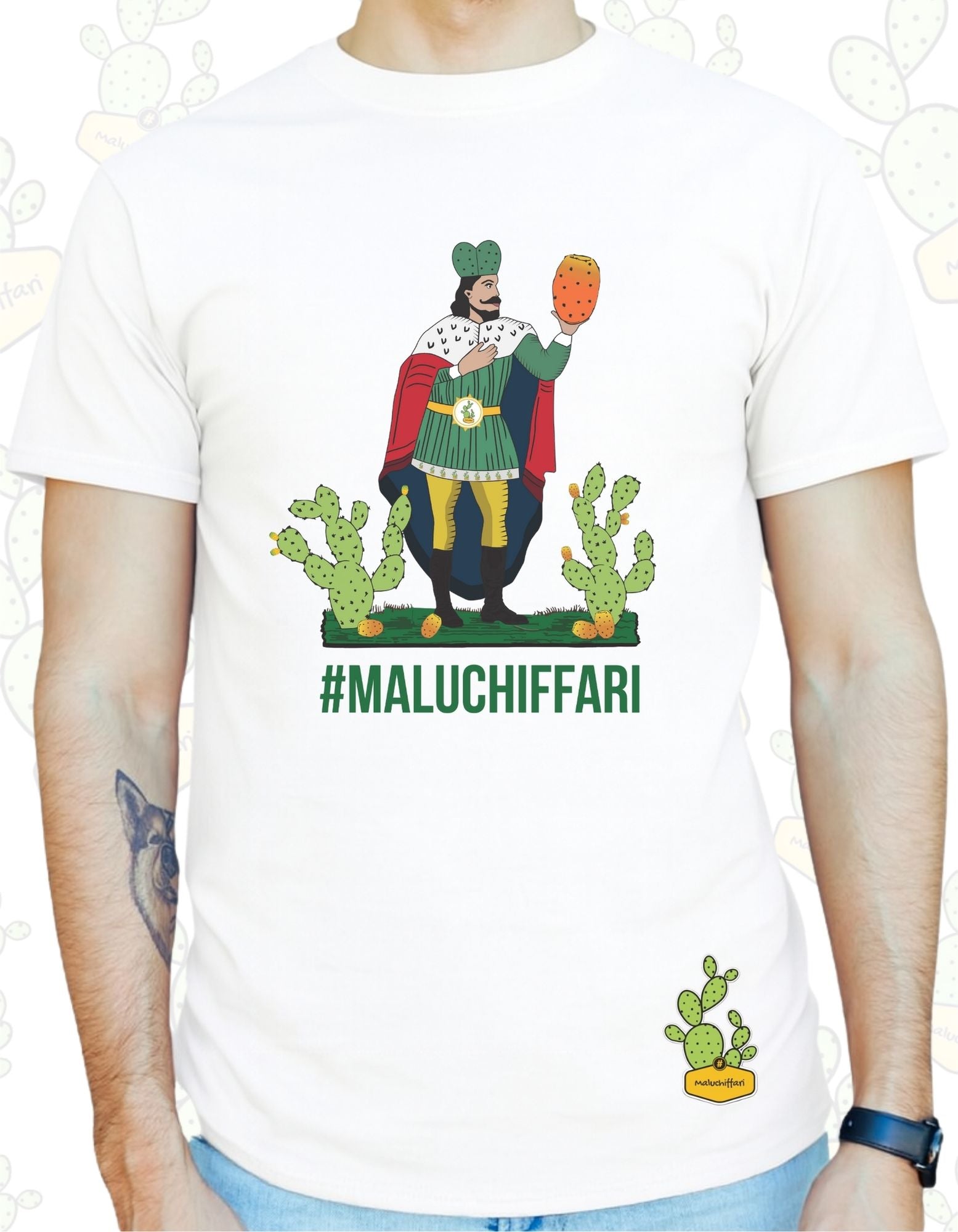 Con le T-shirt Maluchiffari, ti basta n'amuri di grafica stampata in petto per fare capiri chi sei: ironico, originale e 100% siculo. Perfetta per una risata, … per fare colpo.